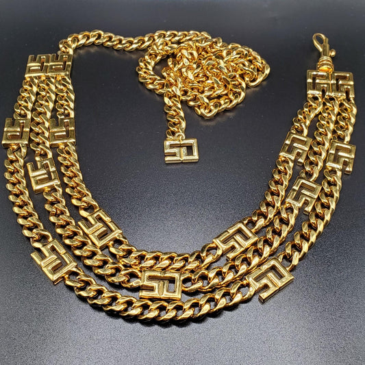 Vintage ST JOHN SJ Logo Designer Runway Layered Gold Tone Chain Belt/Necklace