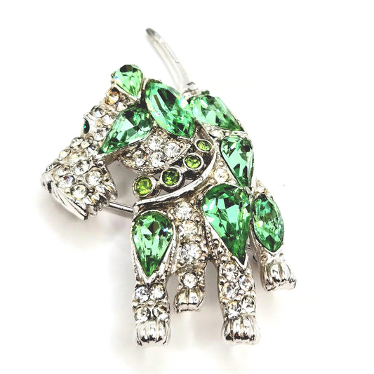 Vintage BOGOFF Scottish Terrier Dog green clear rhinestones silver tone Brooch Pin