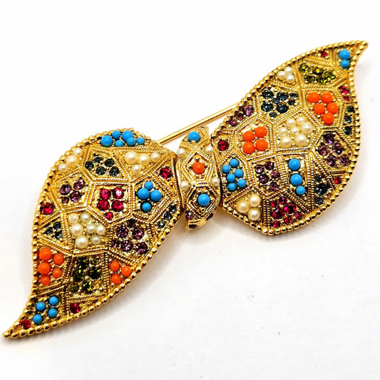 Vintage D'ORLAN Bow multicolor gold tone Brooch Pin Designer Runway