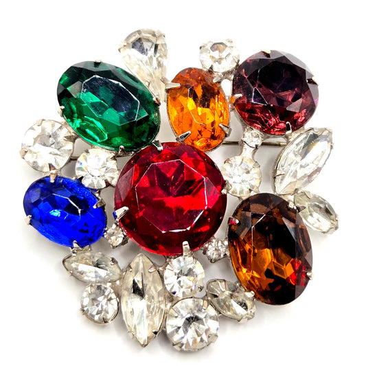 Vintage Juliana Multicolor, multishape rhinestones silver tone Statement Brooch pin