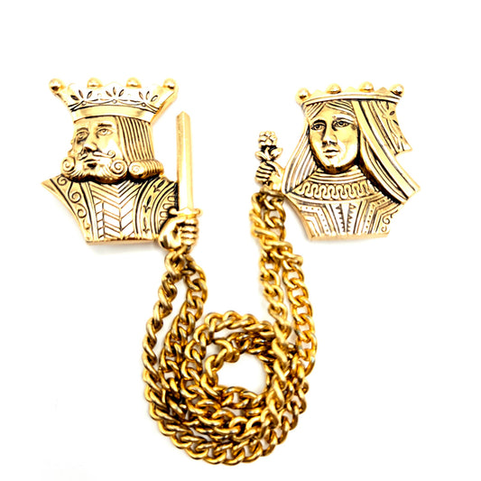 Vintage CORO Figural KING QUEEN Chatelaine Gold Tone Brooch Pins
