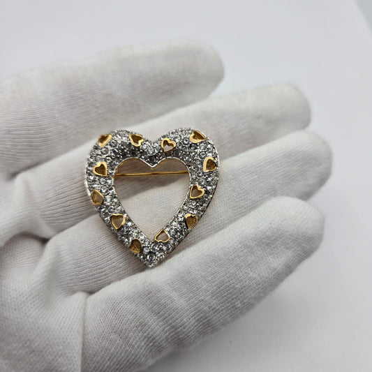 Vintage SWAROVSKI Swan Signed Heart Shaped Pave Crystal Brooch Pin, Gold Tone