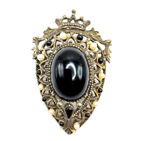 Vintage FLORENZA Rococo Cameo Crown, Antique Gold Tone Brooch pin