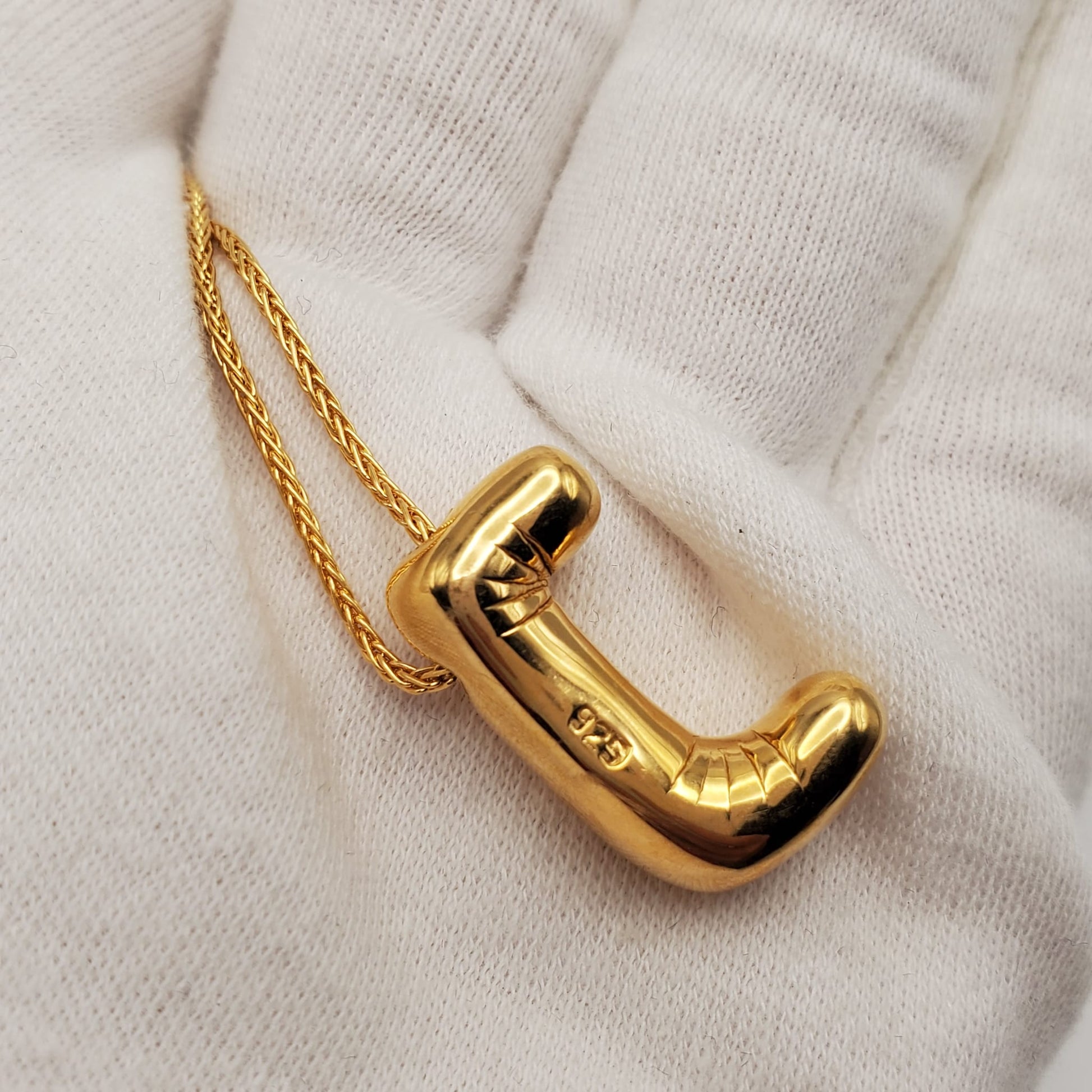 MAISON IREM Balloon J Letter 925 Silver, Gold Tone Necklace NEW with Box