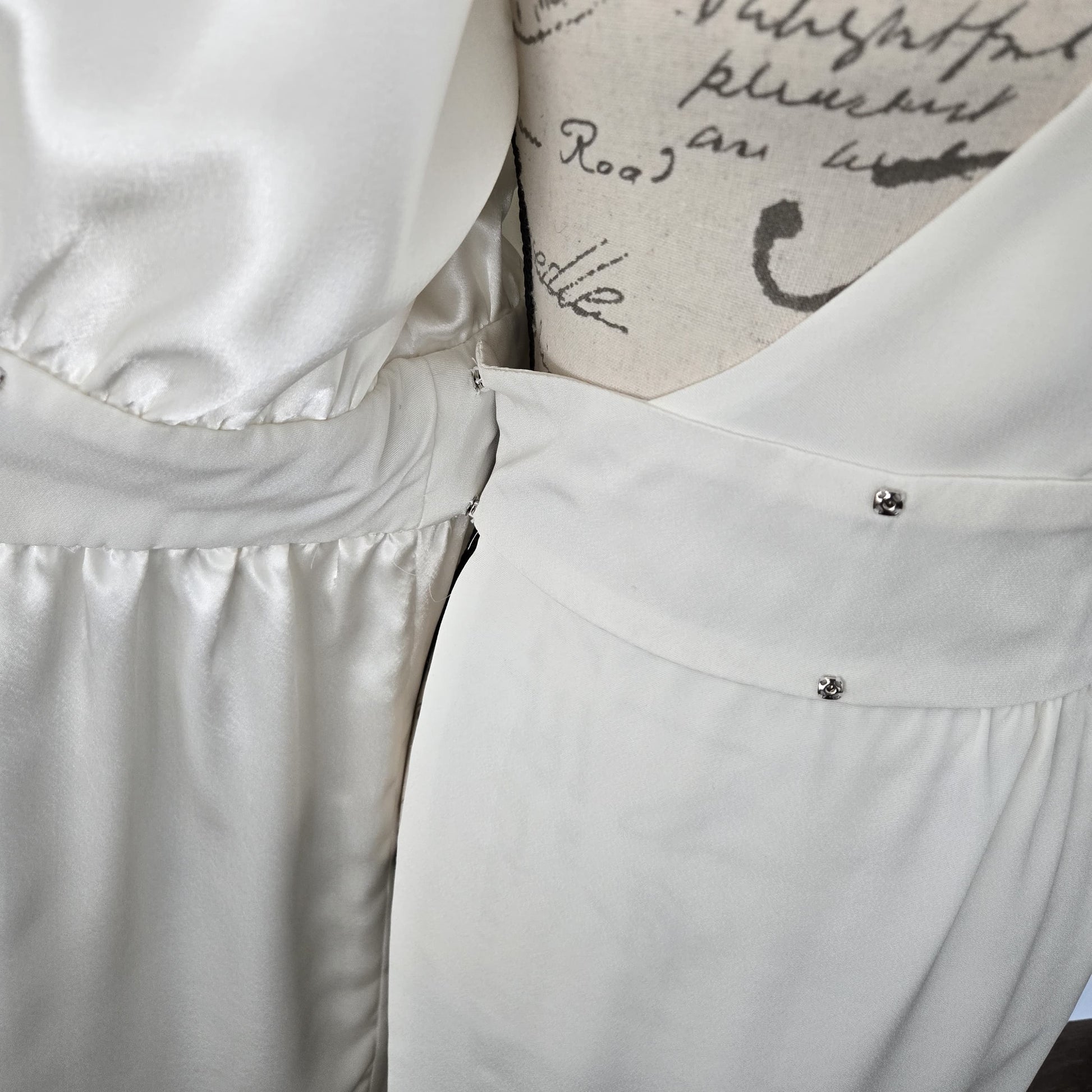 This dress has a 3 tiny stains, they are barely noticeable, other then this the dress is in very good condition.