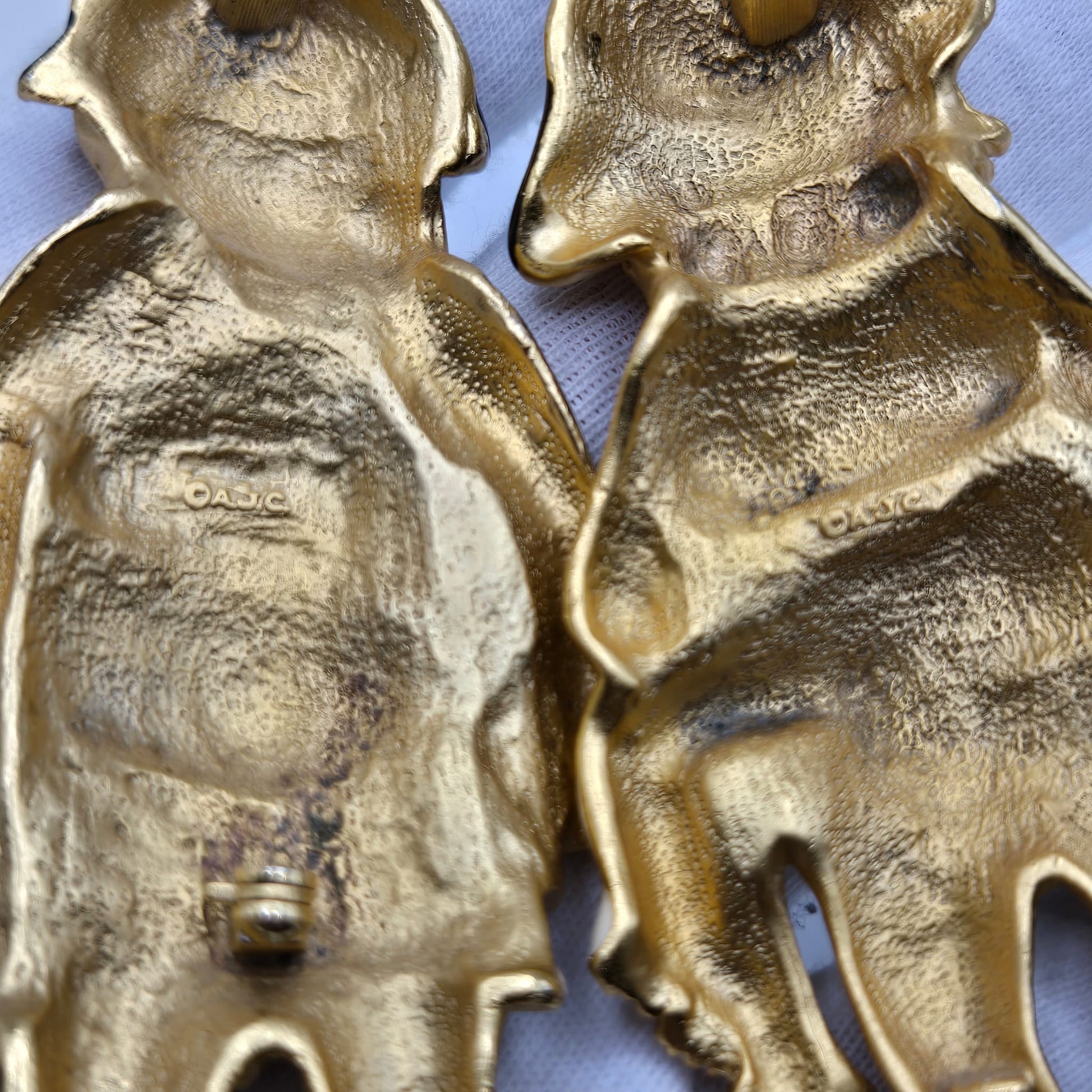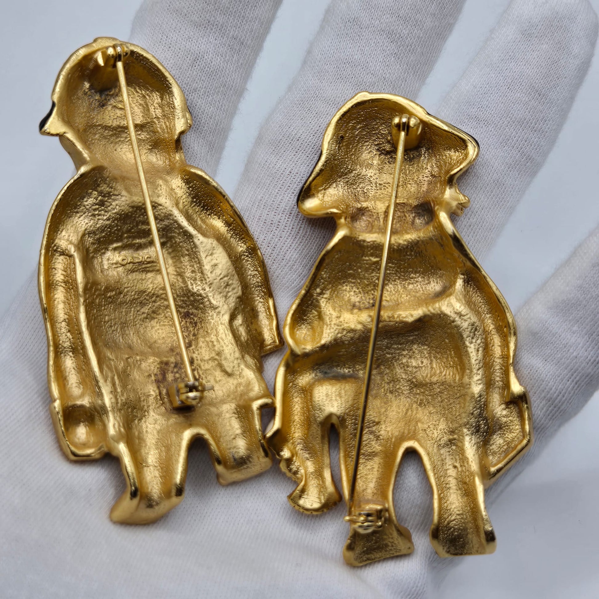 Vintage AJC Signed huge funny beach man and women set gold tone black enamel Brooch pins