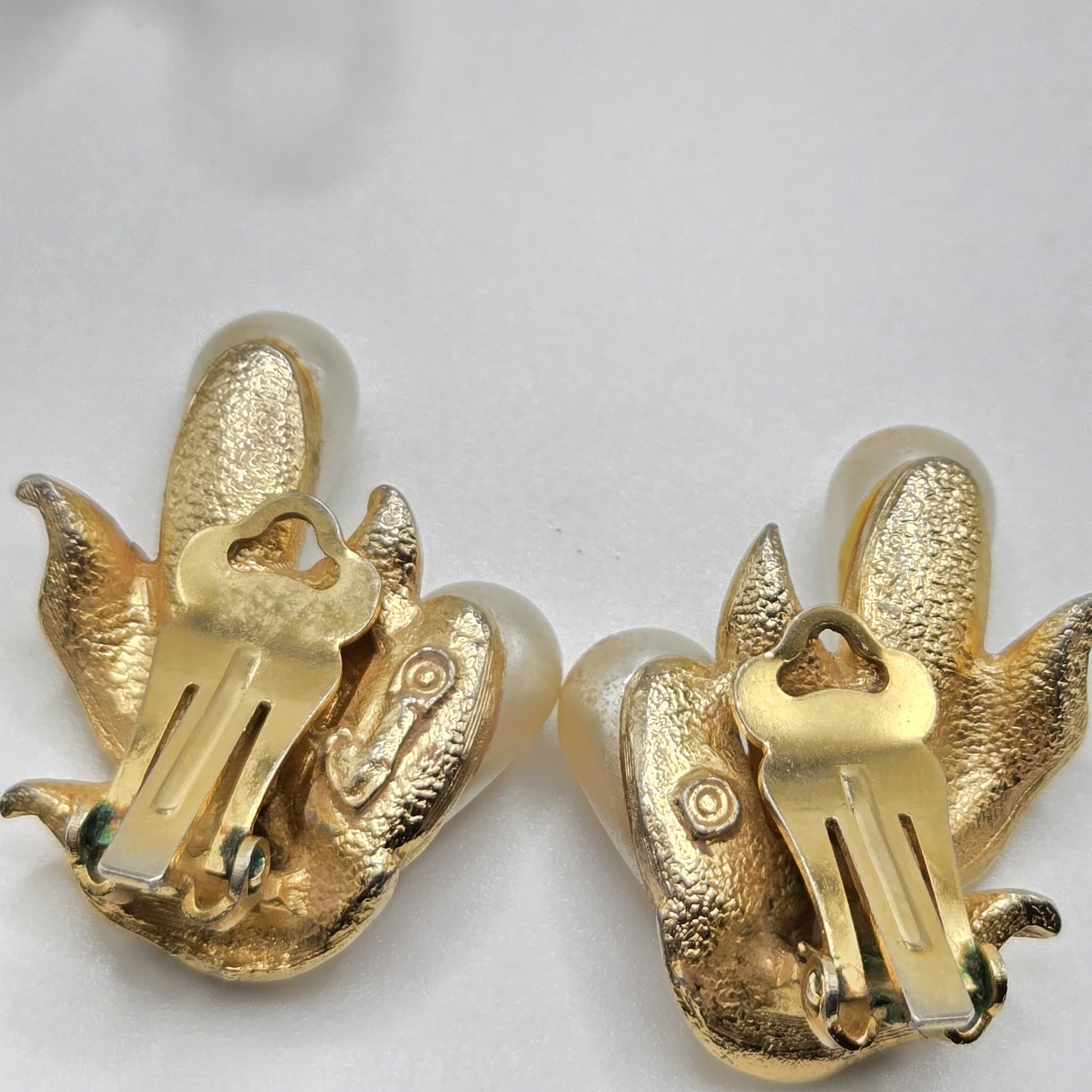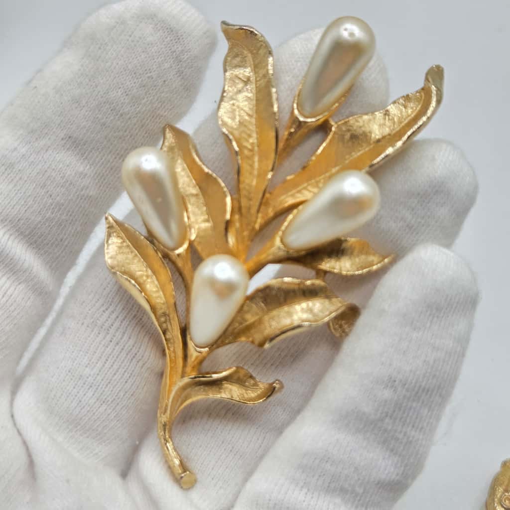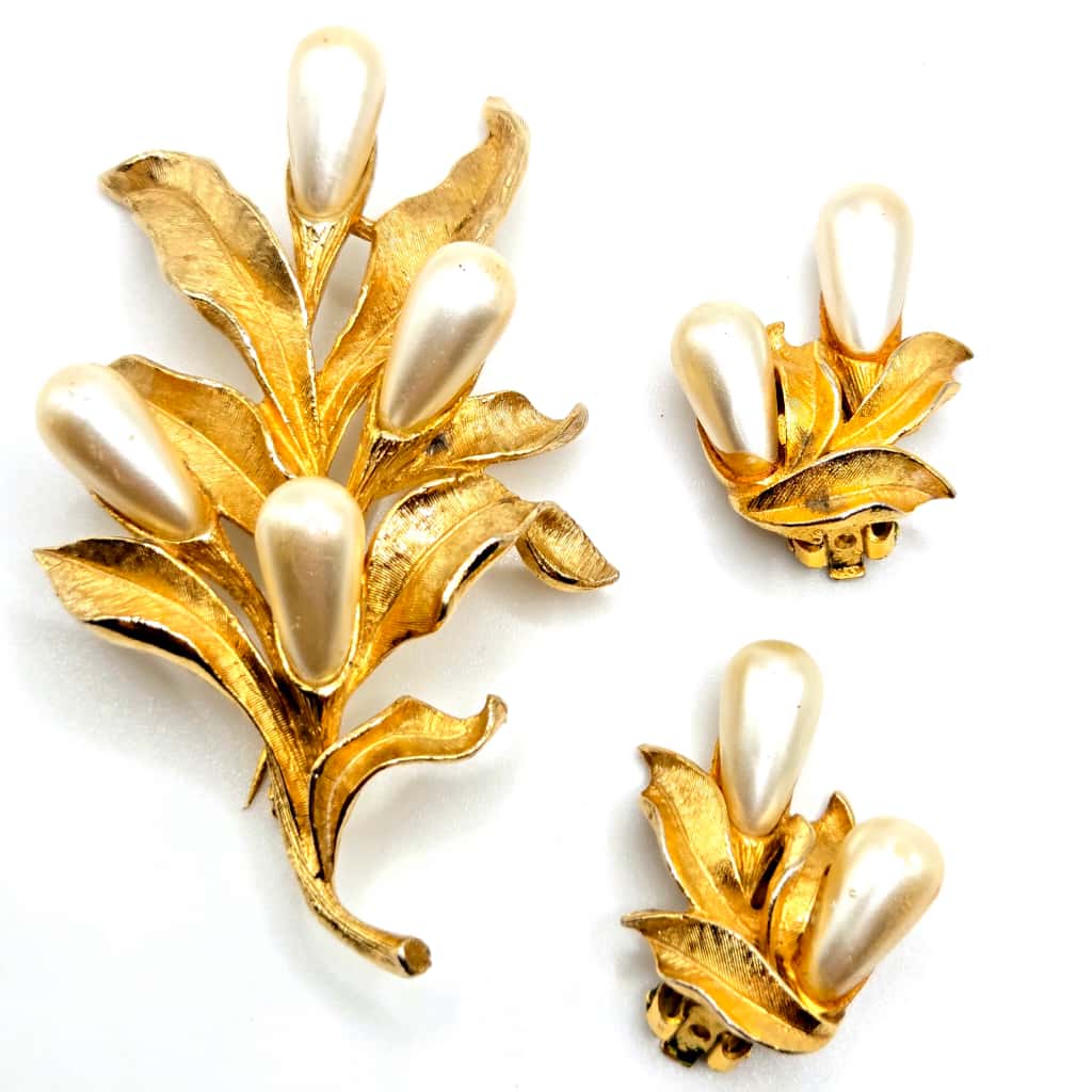Vintage ART Arthur Pepper Faux pearl floral gold tone Brooch Pin and clip on earrings set