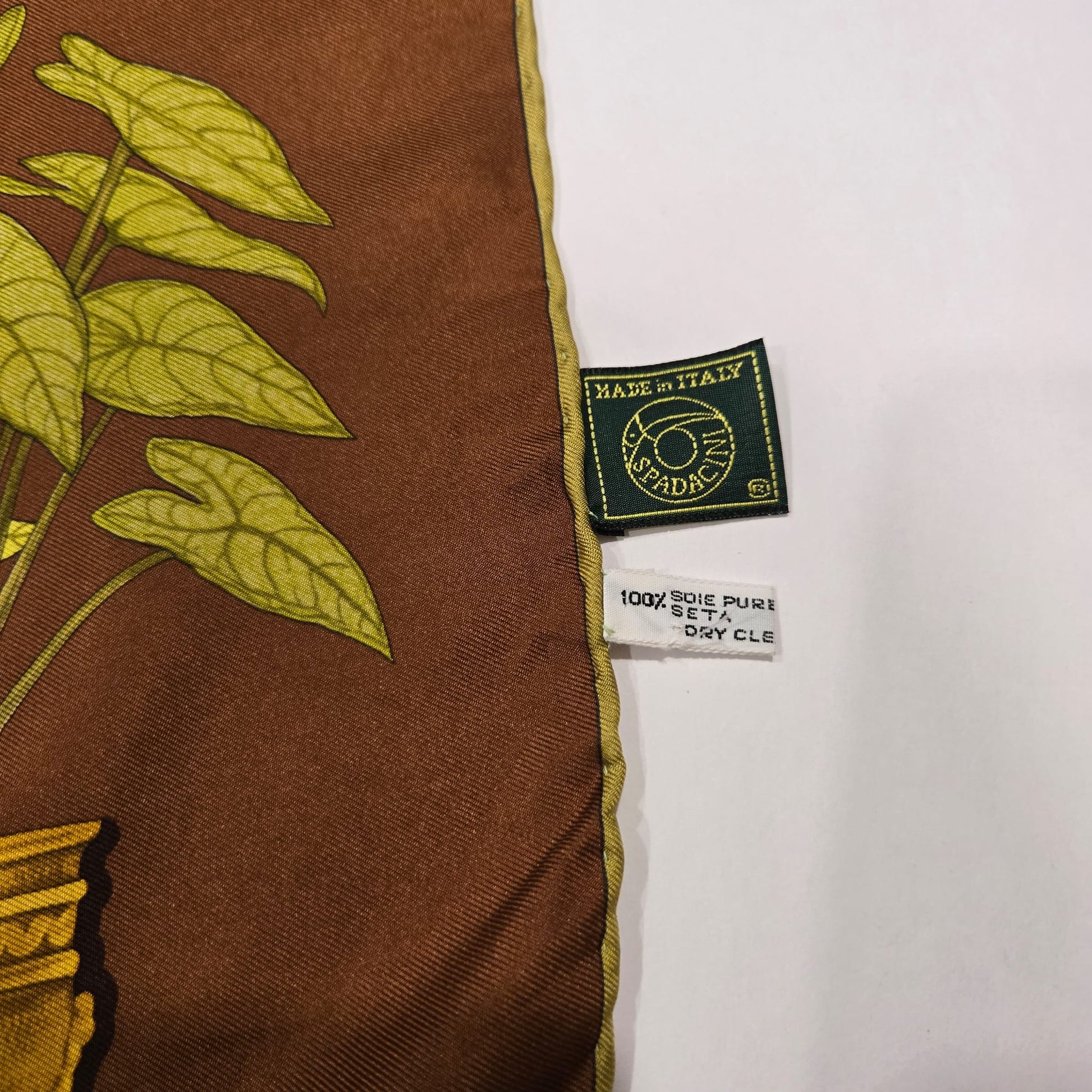 Vintage BEPPE SPADACINI magnificent plants bird floral botanical silk scarf 34x34