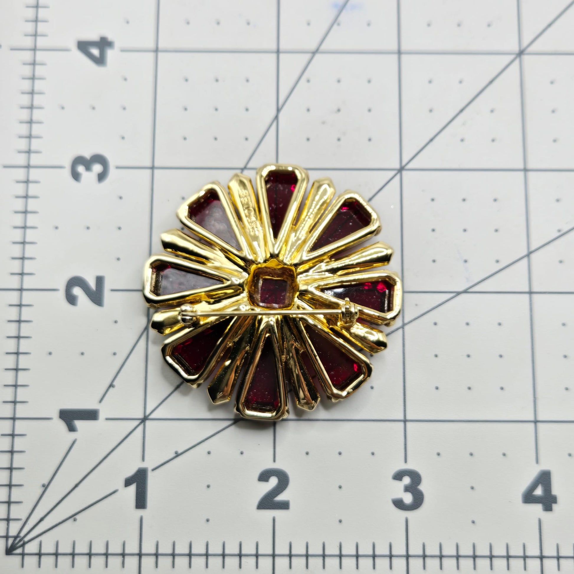 Vintage CAROLEE Maltese Cross Ruby Red Glass, Rhinestones gold tone open back Brooch pin