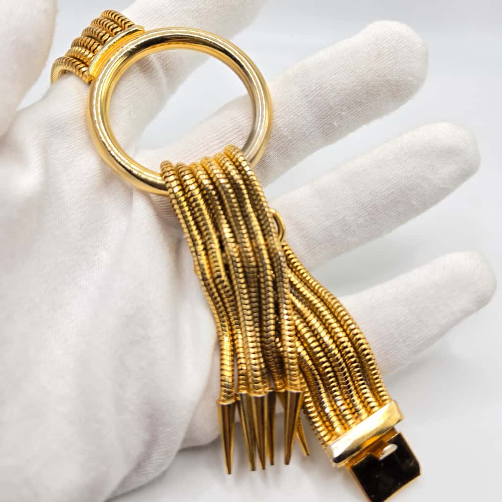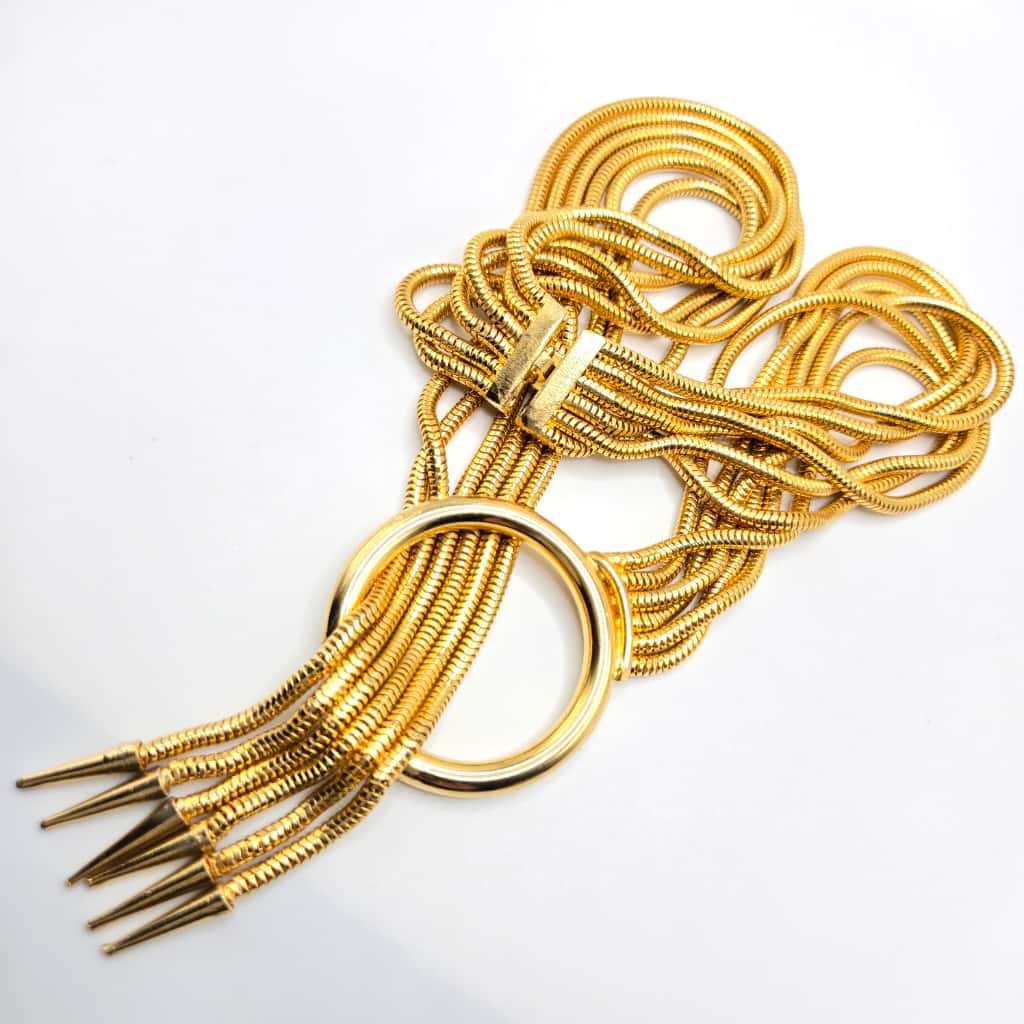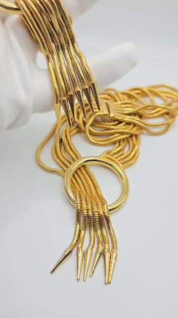 Vintage Designer Runway Multi strand snake chain gold tone necklace and bracelet set