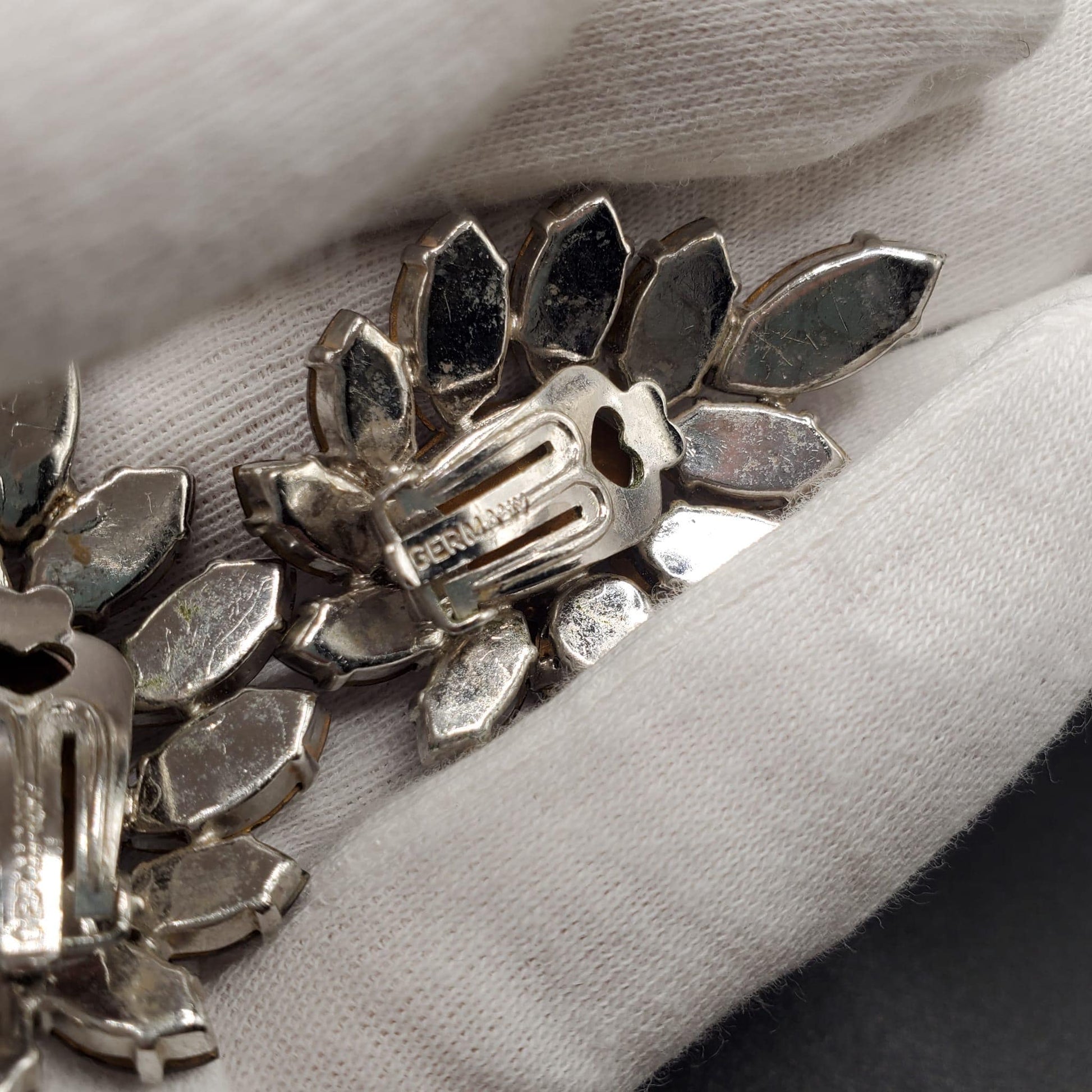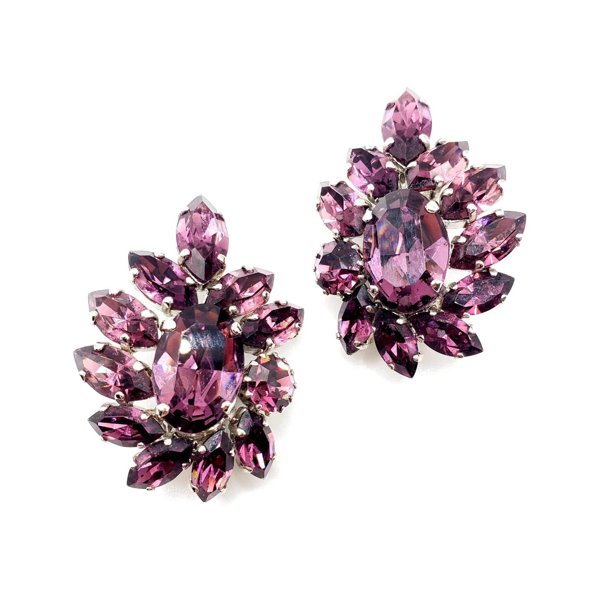 Vintage GERMANY Signed Victorian Revival Bohemian Amethyst Rhinestones Large Cluster Clip On Earrings