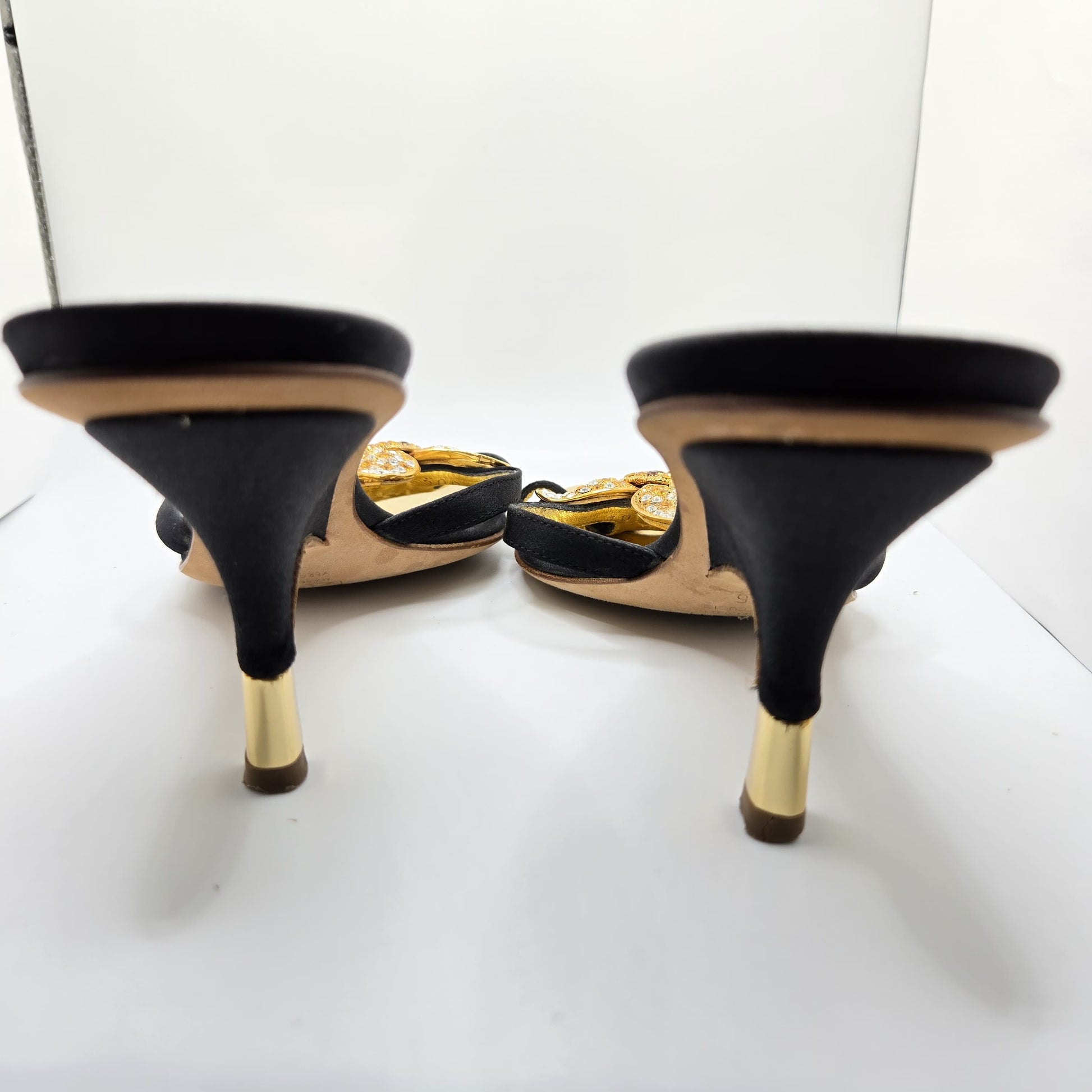 Beautiful Vintage Giuseppe Zanotti Jeweled Flower black gold Sandals size 36