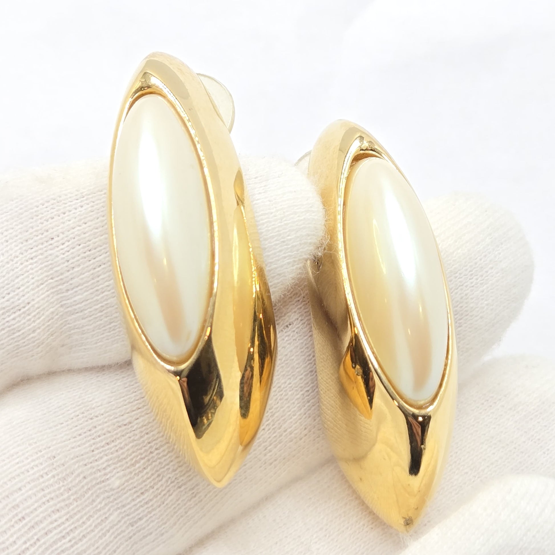 Vintage GIVENCHY Large Gold tone Faux pearl Earrings