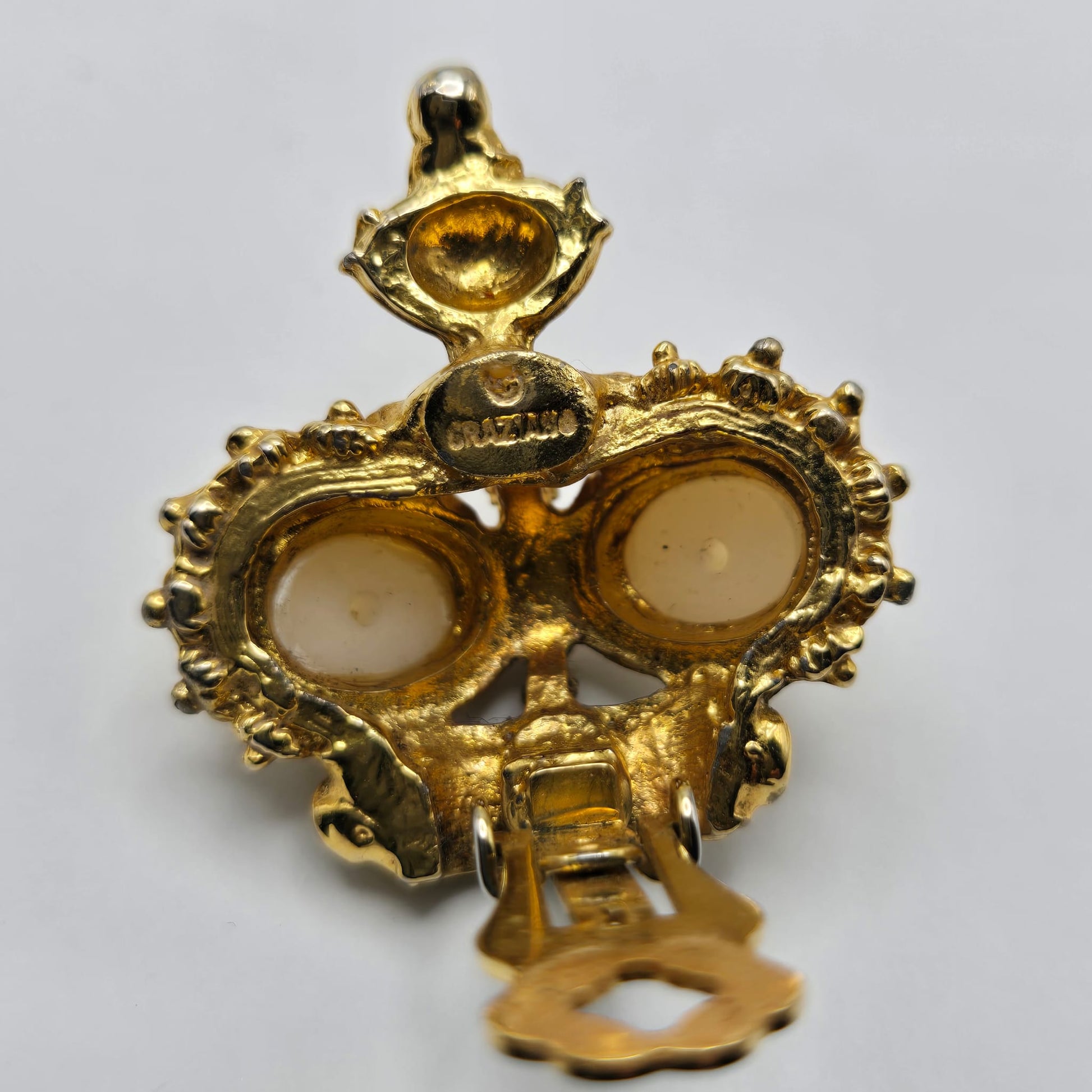 Vintage GRAZIANO Crown, Faux Pearls, Rhinestones, Gold Tone Clip on Earrings