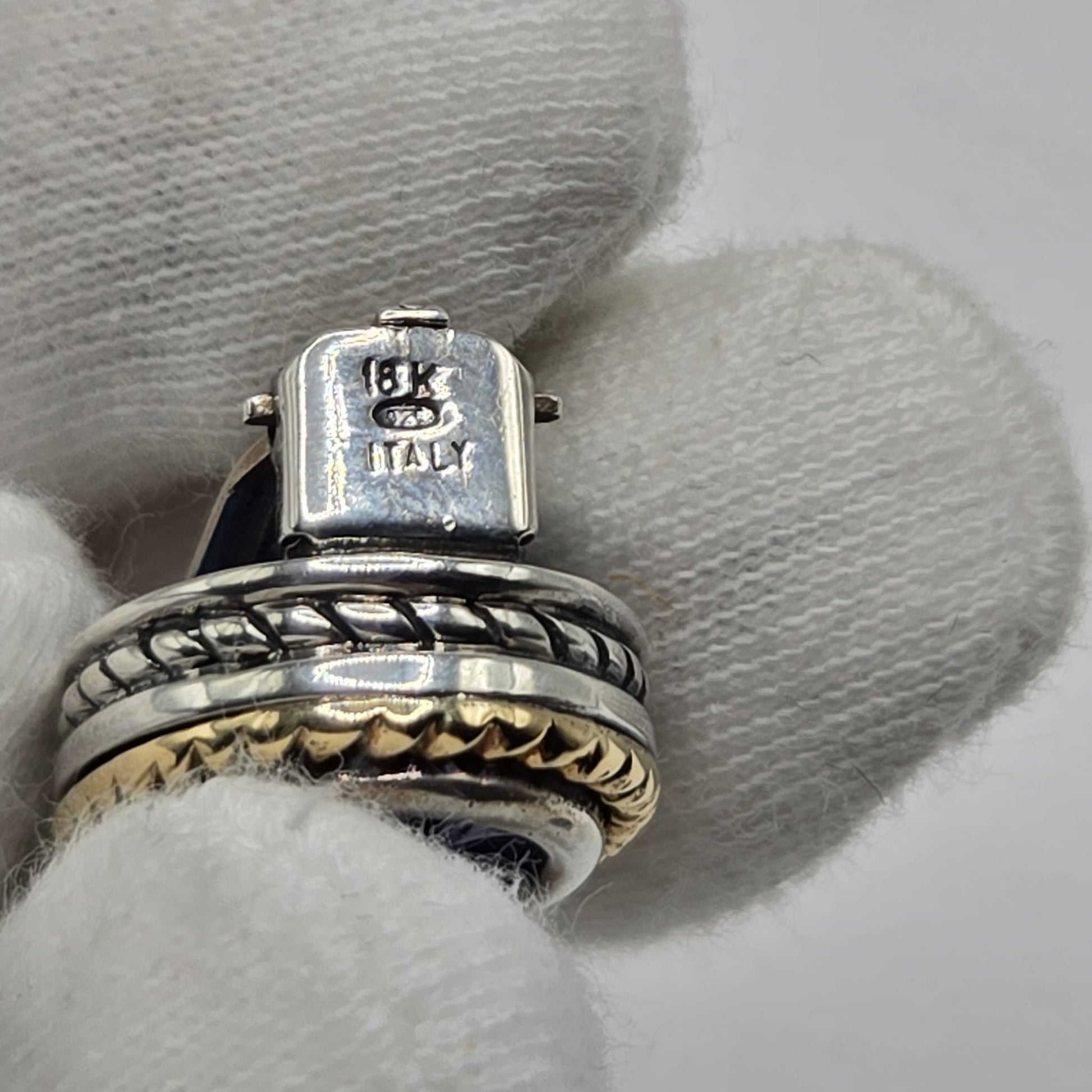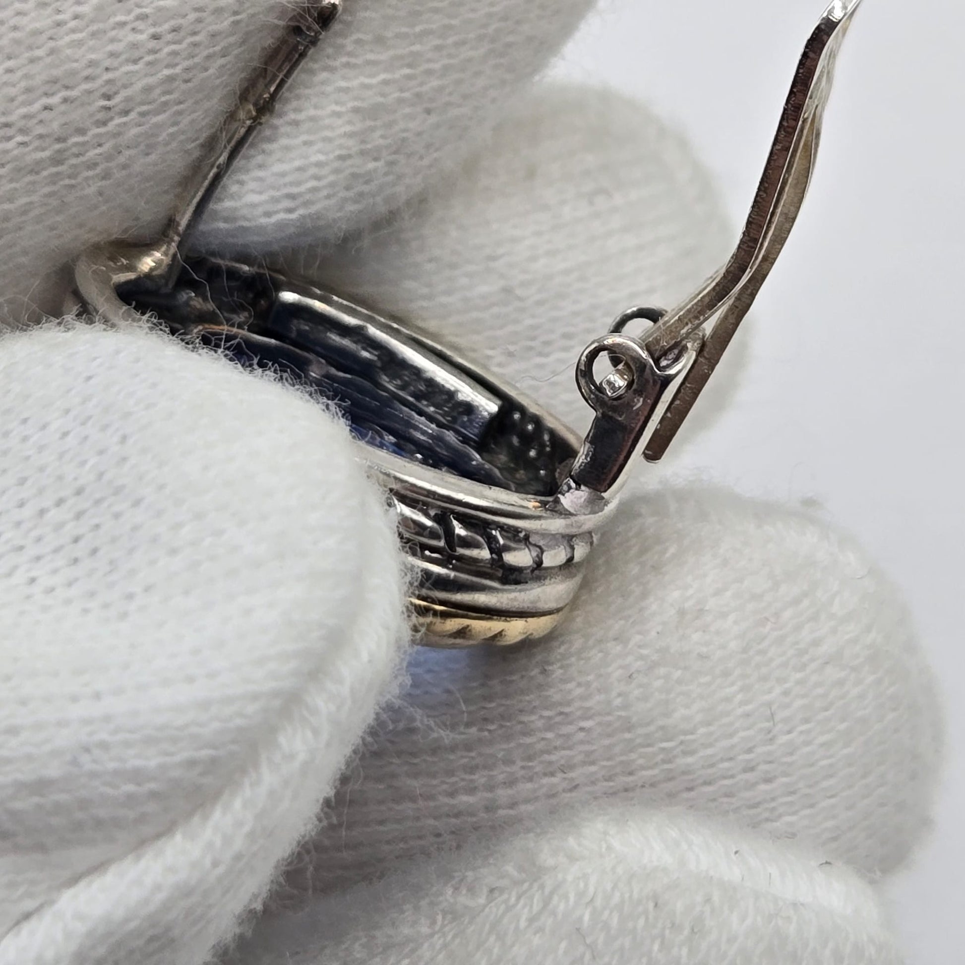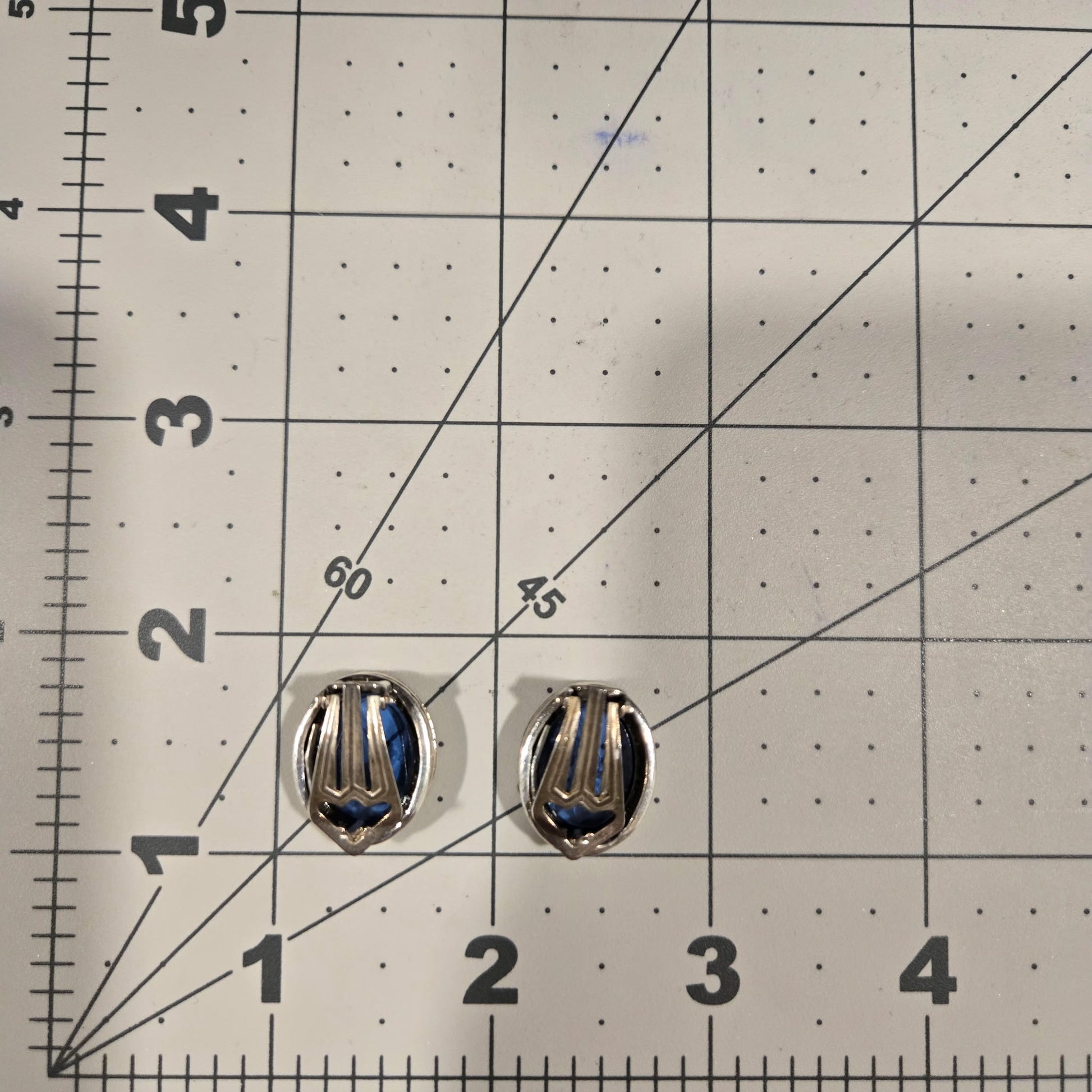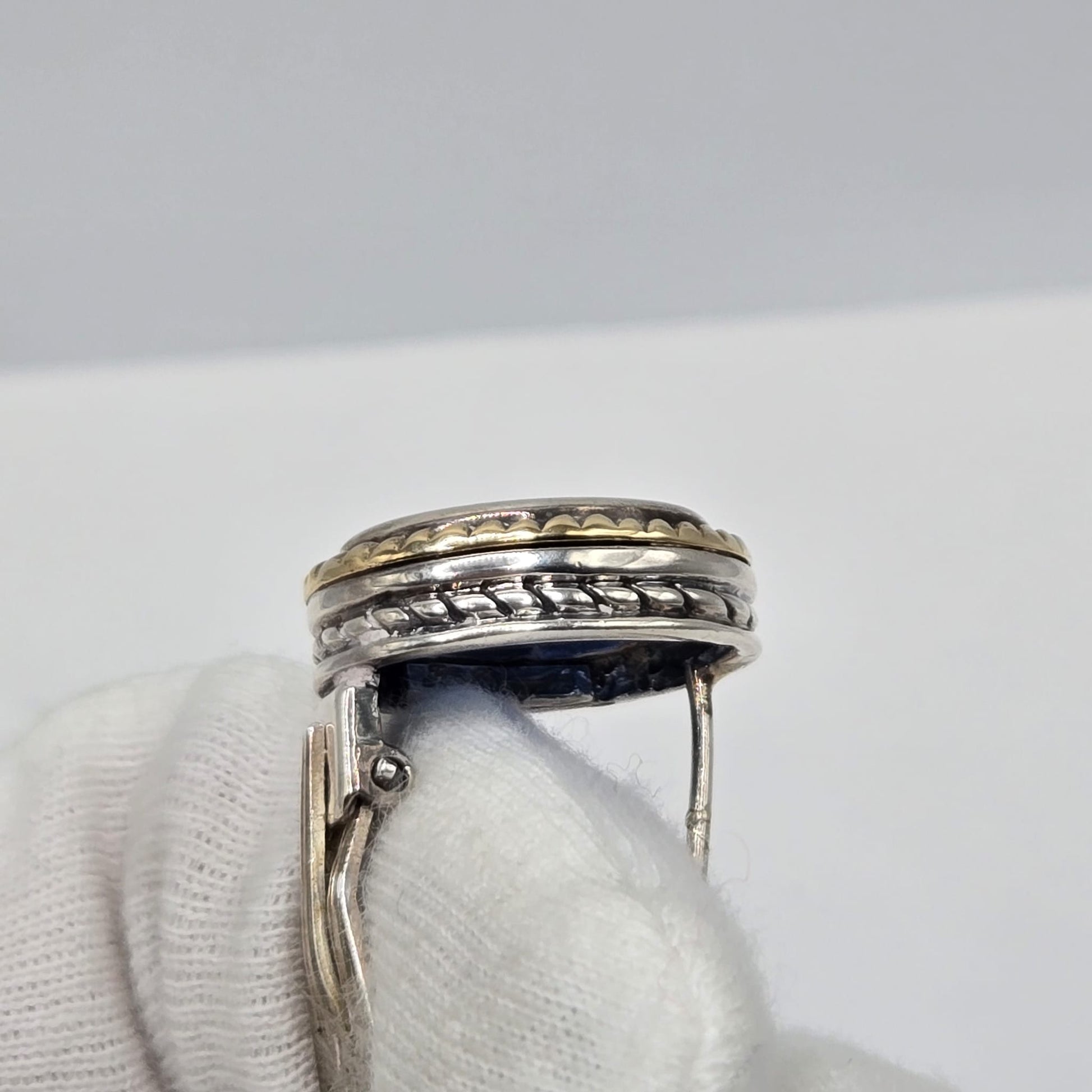 Beautiful Vintage Italian FLLI MENEGATTI 925 Sterling Silver, 18K Yellow Gold Blue Hand Carved Venetian Glass Intaglio Earrings