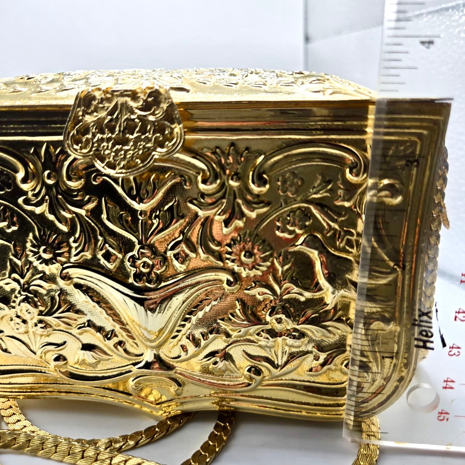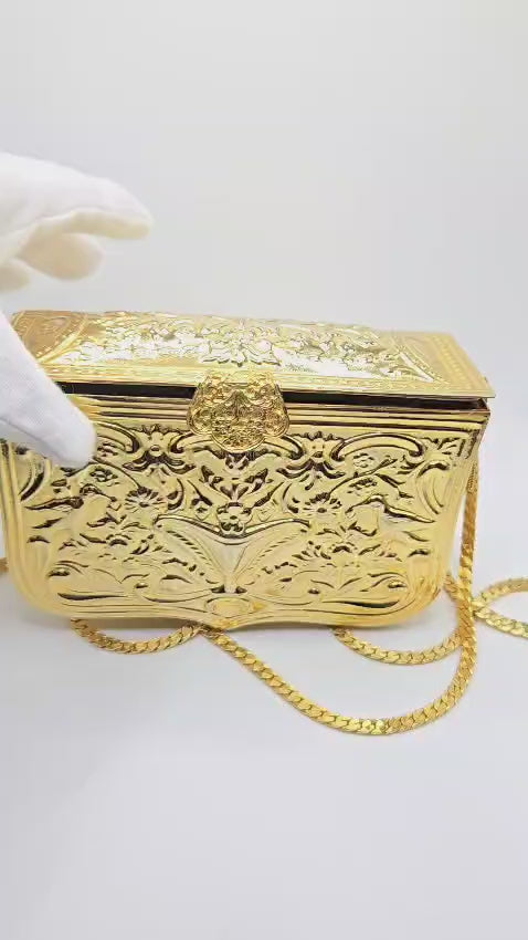 Vintage JUDITH LEIBER Hard Gold tone Metal Minaudière evening clutch bag