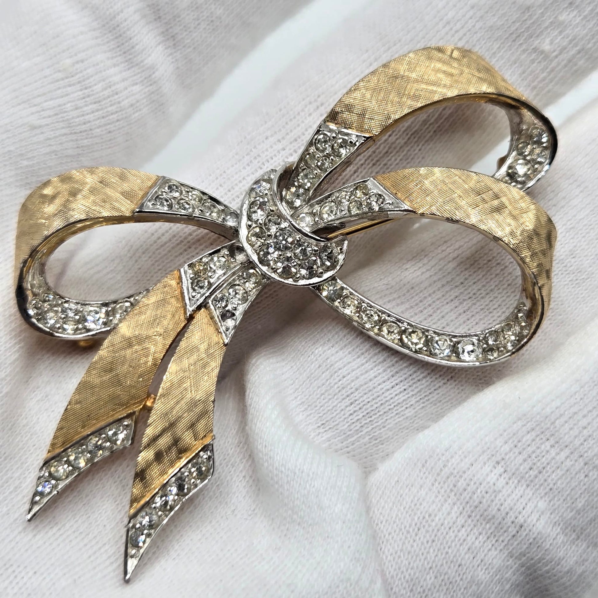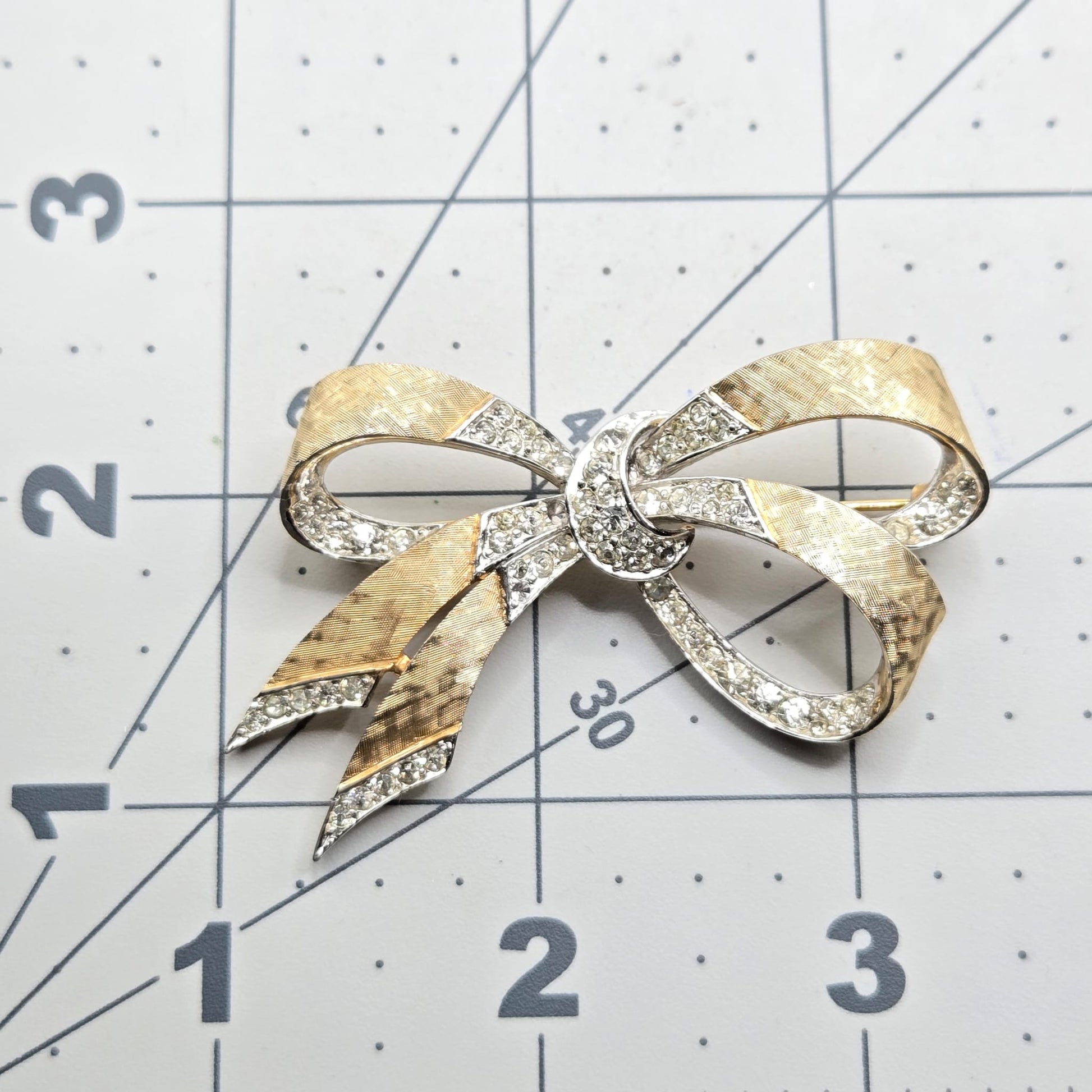 Vintage MARCEL BOUCHER Pave Rhinestones Bow gold tone brooch pin