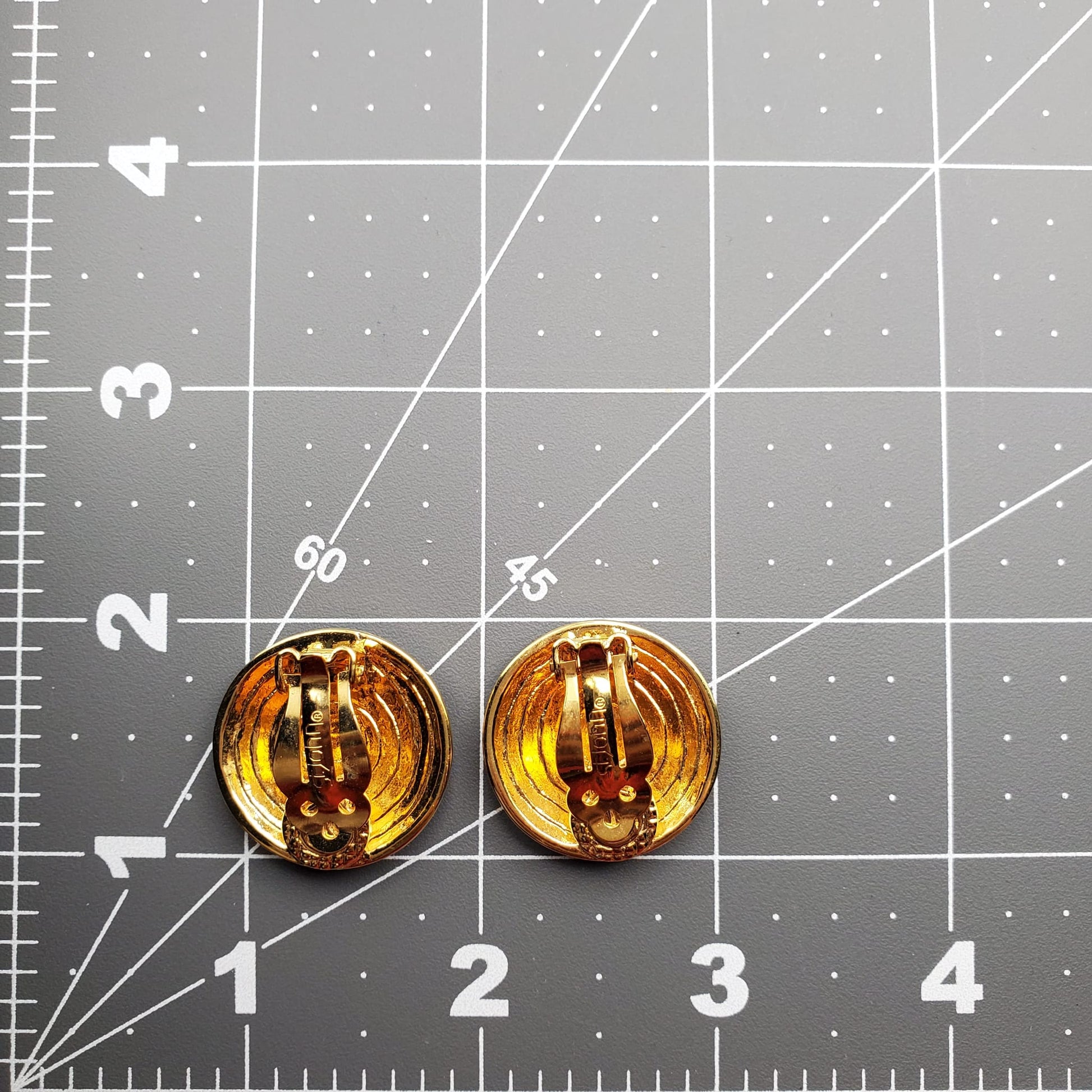 Vintage ST. JOHN Navy Blue Enamel, Gold Tone SJ Logo Runway, Designer Clip On Earrings